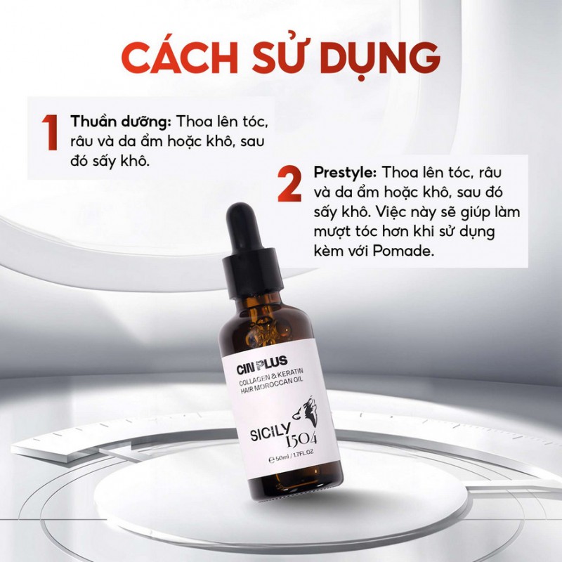 Tinh dầu dưỡng tóc Cinplus Collagen and Keratin Hair Moroccan Oil là một sản phẩm dưỡng tóc cực tốt trong tầm giá. Với thành phần các loại dầu dưỡng kết hợp với Dimethicone (một loại silicon có tác dụng làm mềm tóc), sản phẩm giúp tóc thật sự rất sạch sẽ rất mềm mượt, chắc khỏe, sạch gàu, tình trạng tóc rụng và xơ rối giảm xuống rõ rệt do những tinh chất và độ ẩm được bổ sung càng giúp tóc dễ ăn sáp tạo kiểu hơn. Các bạn đừng quá lo lắng về dimethicone khi ngay cả những sản phẩm giá rất cao như Moroccanoil vẫn có chứa chất này và khi sử dụng một liều lượng vừa phải sẽ không gây ảnh hương gì cả nhưng anh em cũng lưu ý sử dụng những sản phẩm có chứa Dimethicone thì nên sử dụng giãn cách khoảng 2-3 lần/tuần và không nên dùng liên tục quá nhiều tránh bị nặng tóc, bết tóc và tránh bị bít lỗ chân lông tóc gây dầu thừa, gàu,..