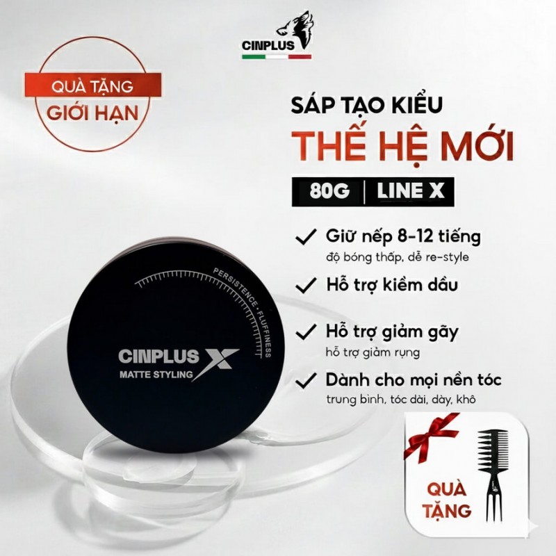 Sáp vuốt tóc Cinplus X Matte Styling – Giữ nếp mạnh, phồng cao